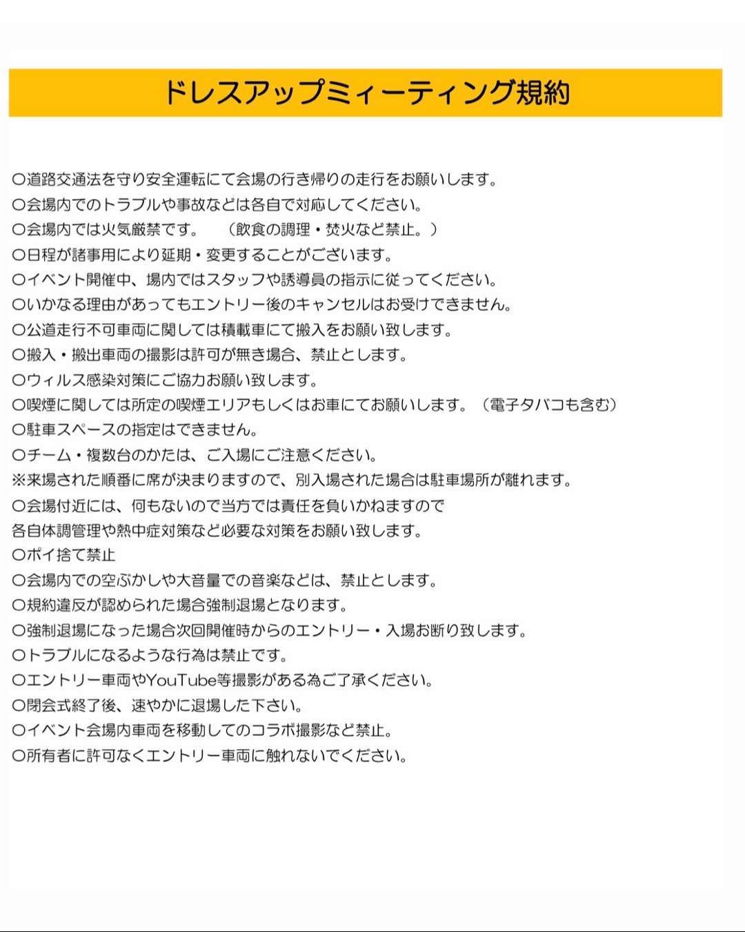搬入の際は、規約を遵守していただき順番にいれていきますのでご了承ください。上記ご理解の上エントリーお願い致します🙇♂️